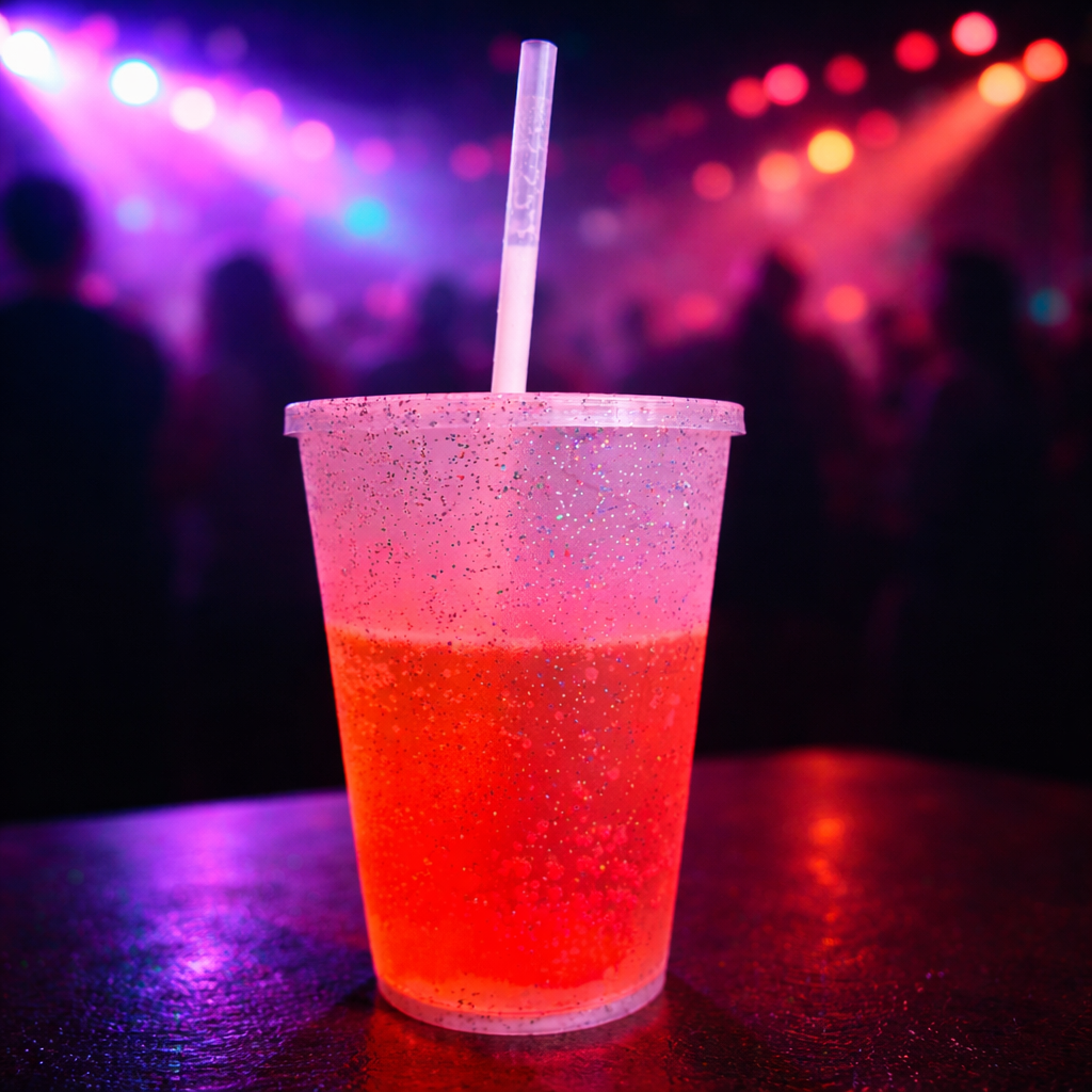 Nuestro GLITTER CUP 580 ml es ideal para fiestas porque ilumina el ambiente literalmente Incluye tapa, popote y luces LED multicolor con acabado glitter Perfecto para eventos, bodas, cumpleaños y antros